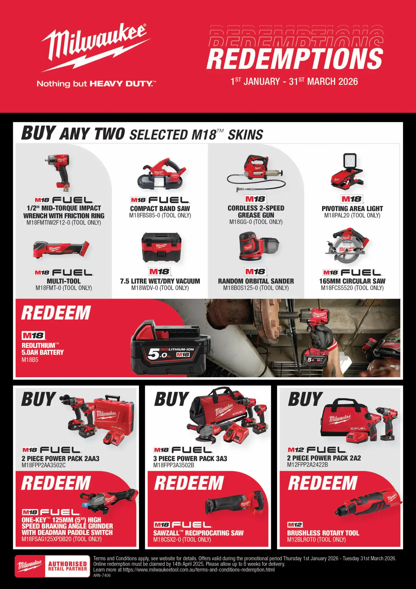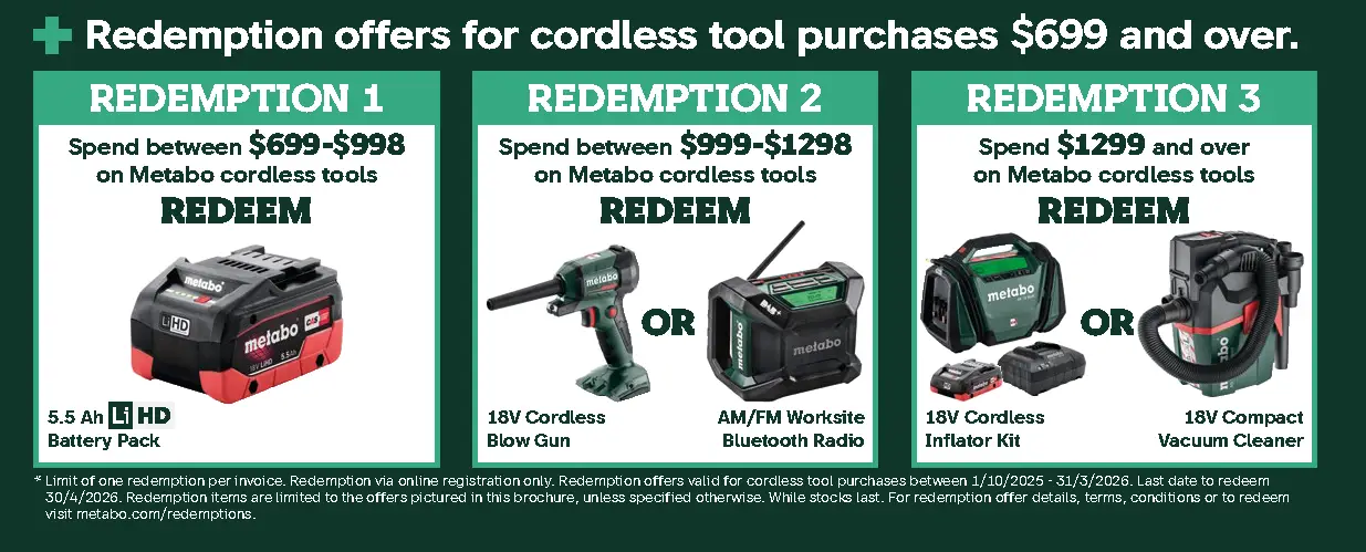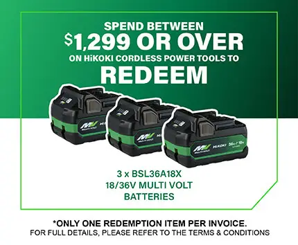 Note:We highly recommend using either a PC/MAC or Tablet to complete your redemption request. Currently smart phone application is not available. *Via redemption, while stocks last. REDEMPTION ITEMS CANNOT be swapped. To redeem visit hikokipowertools.com.au and click on the Redemption Page.